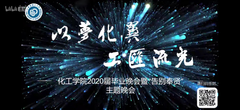 当晚,“以梦化翼,工汇流光”为主题的化工学院2020届毕业晚会在哔哩哔哩直播中拉开帷幕。毕业生们拍摄的毕业主题歌曲微电影,重温四年前写给自己的信等环节,为毕业生送上暖暖的祝福,激发学生爱校爱院的强烈共鸣。精心准备的13个节目将晚会推向高潮,1.2万余名观众在线上共同观看了此次晚会,节目本身以及千余条弹幕纷纷表达了同学们对华理的深厚情感,祝愿母校越来越好。