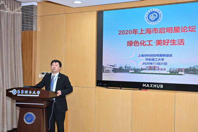 近日,由上海市科技启明星联谊会主办,华东理工大学化工学院承办的“绿色化工•美好生活——2020年上海市启明星论坛”在华东理工大学徐汇校区举行。本次论坛特邀上海市科委人才工作处曲介庸处长、蒯本君副处长,上海市科技启明星联谊会副理事长、上海大学校长、党委副书记刘昌胜院士,以及来自复旦大学、上海交通大学、上海科技大学、中国科学院上海硅酸盐研究所、中国科学院上海有机化学研究所、东华大学、上海理工大学、上海师范大学等多所高校相关领域的近30位知名学者、上海市青年“科技启明星”和部分化工学院青年教师出席。化工学院党委书记朱学栋教授和院长李春忠教授出席了会议,会议由李春忠主持。