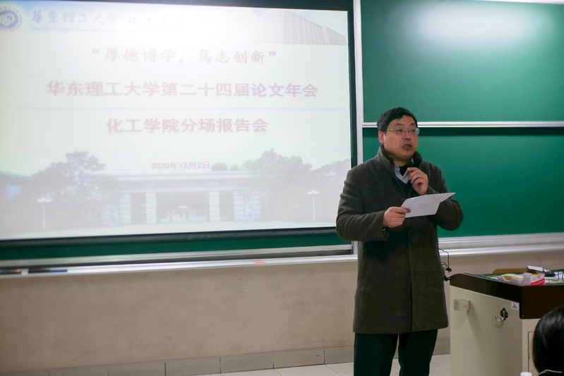 为进一步加强研究生科研能力的培养,激发科研创新活力,促进学科交流与融合,提升化工学子的学术能力。12月2日晚,在第四教学楼102教室举办华东理工大学第二十四届研究生论文年会化工学院分场报告会。六名研究生分别进行论文汇报,学院党委书记朱学栋教授、评委老师乔文明教授、许振良教授、孙辉教授、朱志华教授和王际童教授,200多名新生研究生参加会议。会议由于靖主持。