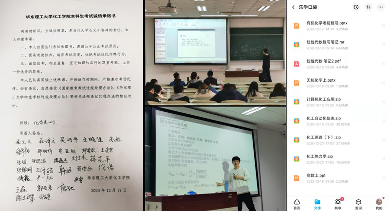 据悉,近期化工学院多措并举强化学风考风建设。学院组织开展 “学无止境”之善学堂、乐学口袋等系列活动,覆盖学生3000多人次,得到了同学们的一致好评。此外,各班级通过观看与诚信相关的影视资料、讨论诚信案例,宣讲“本科生诚信教育规范与管理办法” 、签署诚信考试承诺书,以及班导师辅导员走访学生宿舍等形式,多方位开展诚信教育,实现诚信教育的全覆盖。