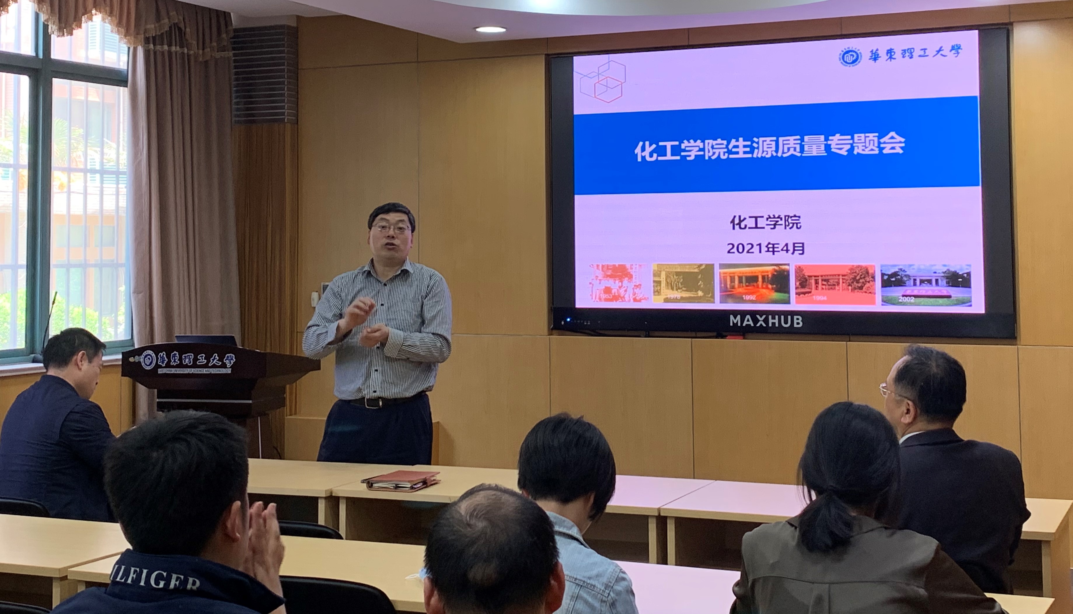4月29日下午,化工学院在实验十六楼108召开生源质量专题会,学院党委书记朱学栋、党委副书记高艺霞、副院长郭旭虹、研究生院招生办公室王帅老师出席了本次会议,会议由副院长刘殿华主持。参加本次会议的还有学院博导、硕导、班导师等。