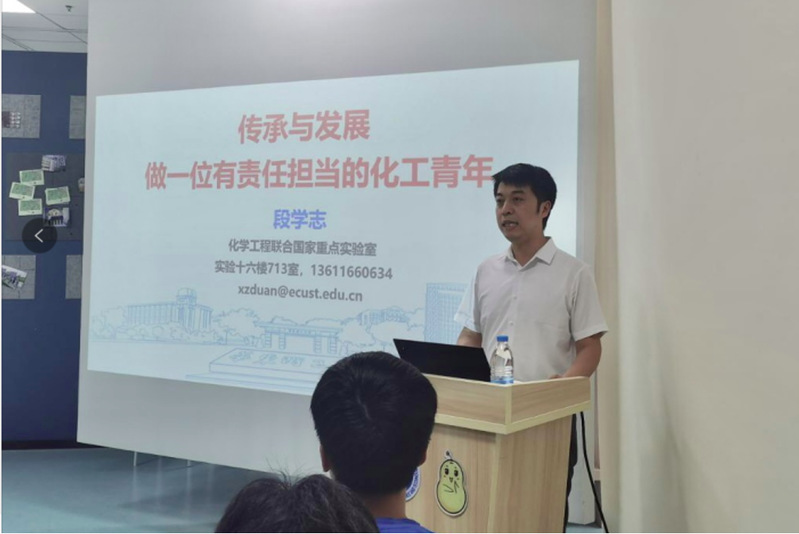 近日,化工学院“青年教师周周讲”系列科研沙龙之“传承与发展——做有责任担当的化工青年”主题讲座于奉贤校区小花梨新媒体工作室举行。本次活动特别邀请到段学志教授主讲。讲座开展线下互动研讨,并同步进行“化工青年集结地”B站直播,直播人气量近600人次。