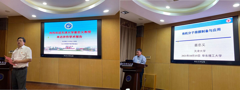 10月15日下午,天津大学姜忠义教授应化工学院邀请,在徐汇校区实验十六楼108会议室为学院师生作题为“有机分子筛膜制备与应用”的学术报告。报告由化工学院党委书记朱学栋教授主持,化工学院院长李春忠教授以及学院师生参加了报告会。