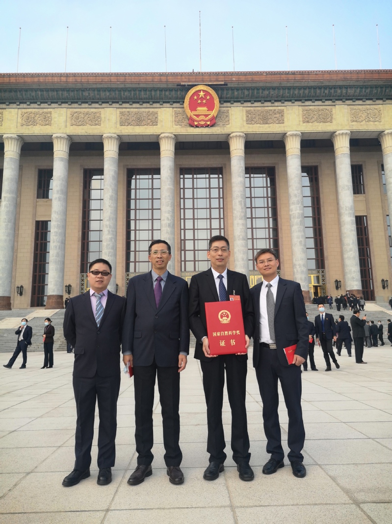 11月3日,中共中央、国务院在北京人民大会堂隆重举行2020年度国家科学技术奖励大会,华东理工大学化工学院院长李春忠教授领衔,材料科学与工程学院江浩、杨化桂、朱以华、沈建华等团队成员完成的“限域反应构建晶态能量转换材料及调控机制”科研成果喜获国家自然科学二等奖,李春忠作为获奖代表上台领奖。