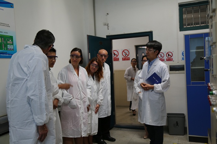 报告会结束之后,系主任吴艳阳老师带领代表团一行前往化学工程与工艺专业实验室参观。化工专业实验室负责人徐菊美老师、青年教师段学志和徐益升老师向来访人员介绍了实验室装置情况和实验课程运营情况等。