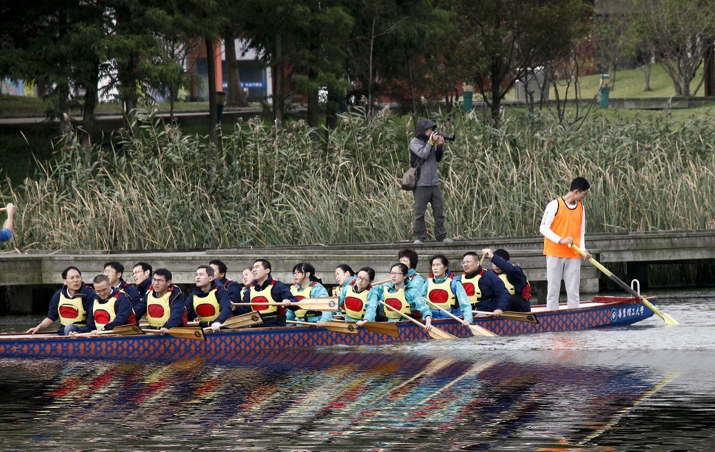 10月30日下午,奉贤校区通海湖畔旌旗飘扬、锣鼓喧天、吶喊助威声阵阵,第10届“校庆杯”教工龙舟赛也在此拉开帷幕。经过激烈的角逐,化工学院勇夺第五名。
